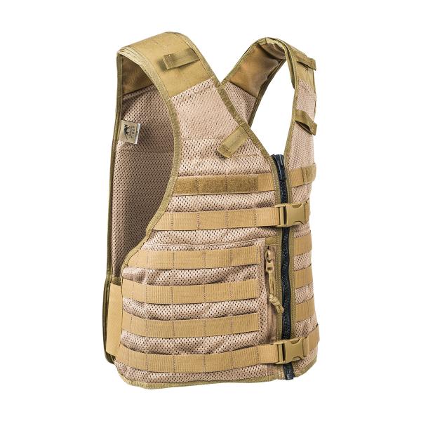 Length-adjustable rubberised padded shoulder section left and right; Zip compartment on the front; Front zip; Length of side sections adjustable; Front in mesh material; Front with fold-away compartment for protective panels; Insert for protective panel on back; MOLLE system for additional equipment; MOLLE system on the backside.