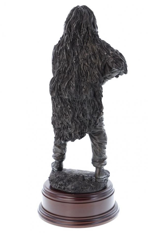 12" scale cold cast bronze resin sculpture of a British Army Sniper with the L115A3 rifle.