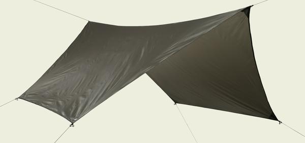 This PU-coated polyester ripstop rainfly works with all Hennessy Hammock models providing generous protection from wind and rain. Can be angled out to provide a large covered area for cooking or relaxing or can be staked down near the ground on both sides of the hammock. The "Hex" Fly can also be used on its own. Because of the wind load, this fly should be tied directly to trees with strong polyester cords provided. Two tie outs on each side.