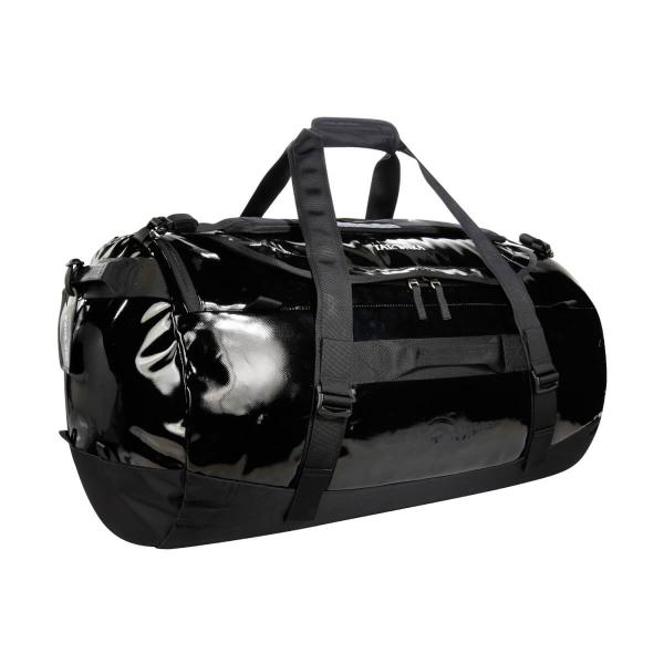 Travel bag in size L with 85 liter volume, stowable shoulder straps and a large opening. Made of truck tarpaulin material.